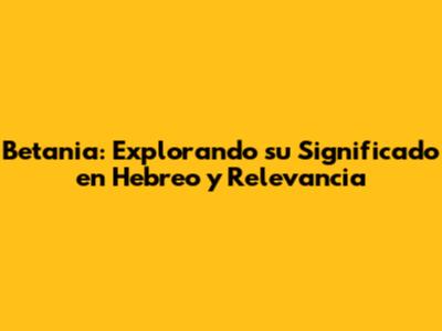 ¿Alguna vez te has preguntado qué significa Betania en hebreo? ¡Vamos a sumergirnos en este fascinante tema! Betania es un nombre con una rica historia y un profundo significado, especialmente relevante en contextos religiosos y bíblicos. Entender el significado de Betania no solo nos ofrece una ventana al pasado, sino que también nos permite apreciar la profundidad cultural y espiritual que encierra. Acompáñame mientras exploramos las raíces hebreas de Betania, su evolución histórica y su impacto en diferentes culturas.