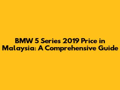 BMW 5 Series 2019 Price In Malaysia: A Comprehensive Guide