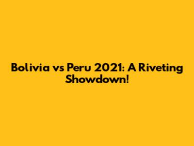 Bolivia Vs Peru 2021: A Riveting Showdown!