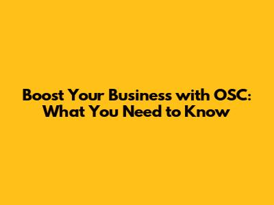 Boost Your Business With OSC: What You Need To Know