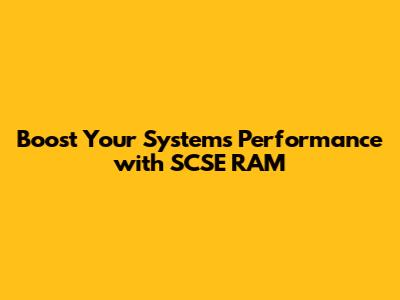 Boost Your System's Performance With SCSE RAM
