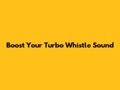 Boost Your Turbo Whistle Sound