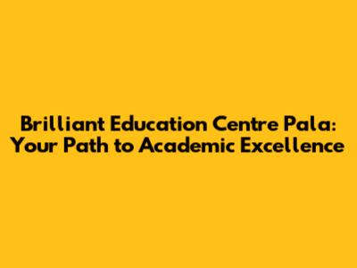 Brilliant Education Centre Pala: Your Path To Academic Excellence