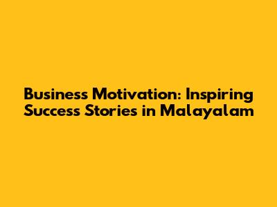 Business Motivation: Inspiring Success Stories In Malayalam
