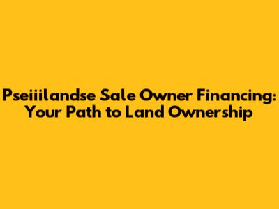 Hey guys! Ever dreamed of owning a piece of land but felt like the traditional route was a roadblock? Well, let's talk about pseiiilandse sale owner financing, a fantastic way to make that dream a reality. Forget the complexities of dealing with banks; owner financing offers a more direct and flexible approach. This article dives deep into how it works, its benefits, and how to navigate the world of pseiiilandse with owner financing options.