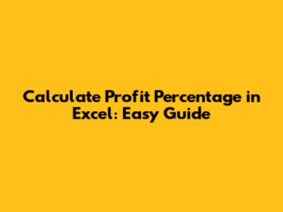 Calculate Profit Percentage In Excel: Easy Guide