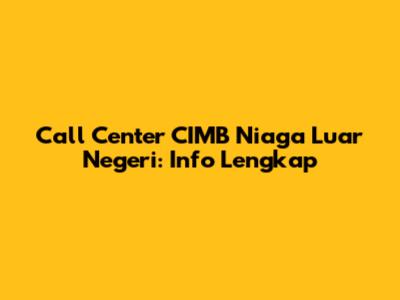 Call Center CIMB Niaga Luar Negeri: Info Lengkap