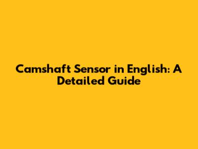 Camshaft Sensor In English: A Detailed Guide