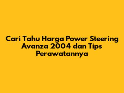 Cari Tahu Harga Power Steering Avanza 2004 Dan Tips Perawatannya