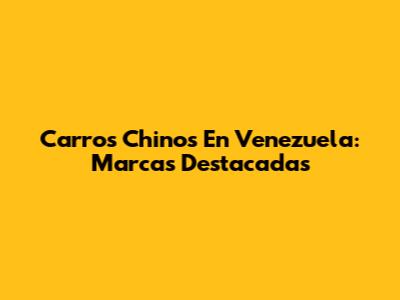 Carros Chinos En Venezuela: Marcas Destacadas