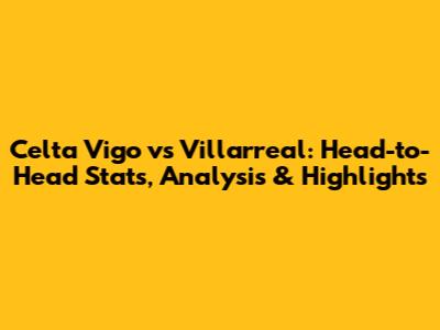 Celta Vigo Vs Villarreal: H2H Stats, Analysis & Highlights