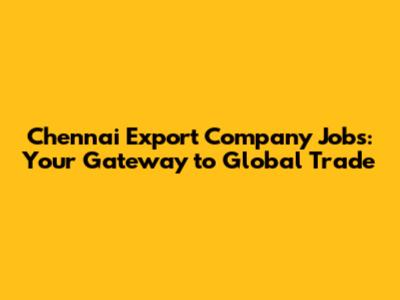 Hey there, future global traders! Are you on the lookout for exciting career opportunities? If you're based in the vibrant city of Chennai and dreaming of a career in international trade, then you're in the right place. Chennai, a major hub for commerce and industry, is home to numerous export companies offering a plethora of jobs in export companies in Chennai. This article is your ultimate guide to navigating the world of export jobs in Chennai. We'll explore the various roles available, the skills you'll need, and how to land your dream job in this dynamic sector. Let's dive in and uncover the exciting possibilities that await you in the world of exports!