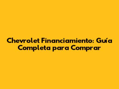 Chevrolet Financiamiento: Guía Completa Para Comprar