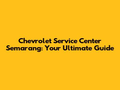 Chevrolet Service Center Semarang: Your Complete Guide