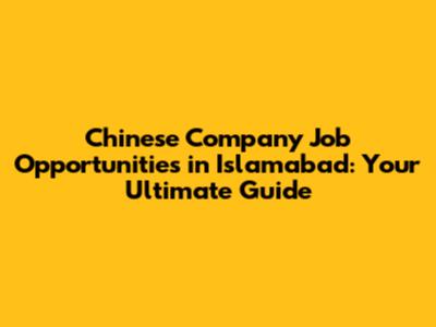 Chinese Company Job Opportunities In Islamabad