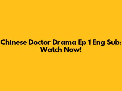 Chinese Doctor Drama Ep 1 Eng Sub: Watch Now!