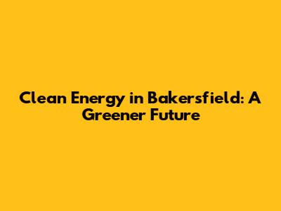 Clean Energy In Bakersfield: A Greener Future