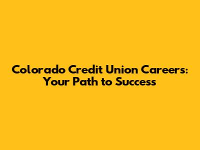 Colorado Credit Union Careers: Your Path To Success
