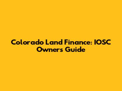 Colorado Land Finance: IOSC Owners Guide