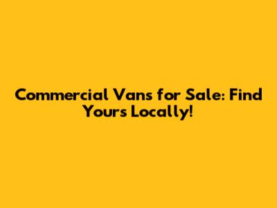Commercial Vans For Sale: Find Yours Locally!
