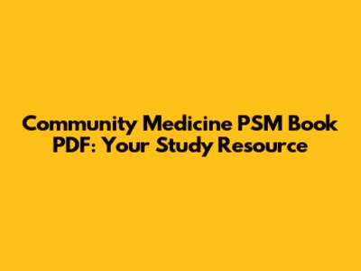 Community Medicine PSM Book PDF: Your Study Resource