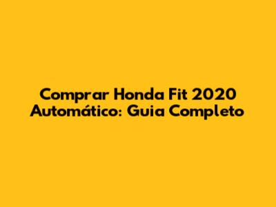 Comprar Honda Fit 2020 Automático: Guia Completo
