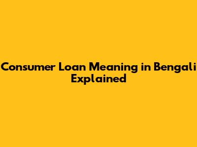 Consumer Loan Meaning In Bengali Explained