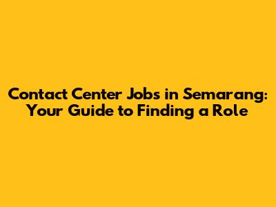 Contact Center Jobs In Semarang: Your Guide To Finding A Role