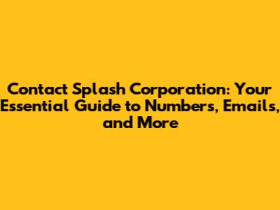 Contact Splash Corporation: Numbers, Emails & Info