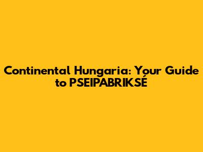 Continental Hungaria: Your Guide To PSEIPABRIKSÉ
