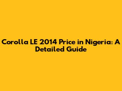 Hey guys! Are you thinking about snagging a Toyota Corolla LE 2014 in Nigeria? You're in the right spot! This article will dive deep into what you can expect to pay, factors influencing the price, and some tips to help you get the best deal. Let's get started!