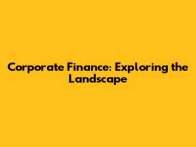 Corporate Finance: Exploring The Landscape