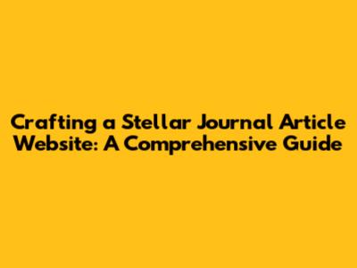 Crafting A Stellar Journal Article Website: A Comprehensive Guide