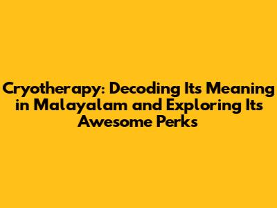 Hey there, health enthusiasts! Ever heard of cryotherapy and wondered what it's all about, especially in the context of Malayalam? Well, you're in the right place! In this article, we're going to dive deep into the meaning of cryotherapy in Malayalam, explore its fascinating applications, and uncover the incredible benefits it offers. So, buckle up, because we're about to embark on a cool journey – pun absolutely intended!