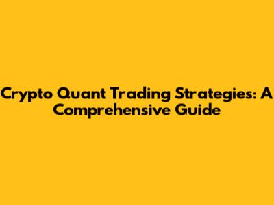 Crypto Quant Trading: Strategies & How To Use Them