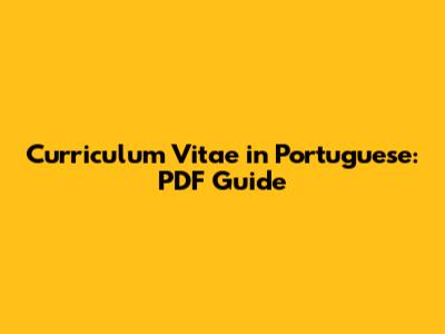 Curriculum Vitae In Portuguese: PDF Guide