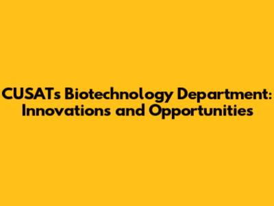 CUSAT's Biotechnology Department: Innovations And Opportunities