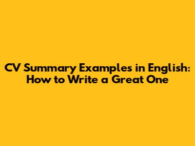 CV Summary Examples In English: How To Write A Great One