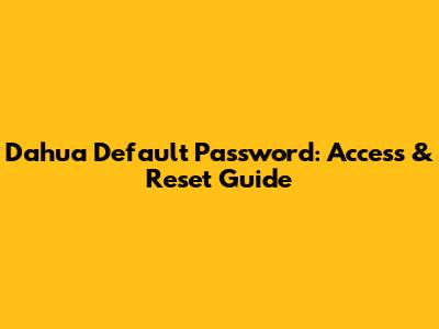 Dahua Default Password: Access & Reset Guide