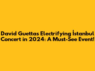 Hey music lovers, are you ready to dance the night away? Get hyped because David Guetta is hitting up İstanbul in 2024, and it's going to be epic! This is your ultimate guide to everything you need to know about the David Guetta İstanbul concert 2024. From the hottest tracks he'll be spinning to where you can snag those precious tickets, we've got you covered, guys! So, buckle up, grab your glow sticks, and let's dive into the electrifying world of David Guetta and his upcoming show. This concert is a prime opportunity for İstanbul locals and international visitors alike to come together and experience the magic of live music. The energy, the atmosphere, and the sheer spectacle of a David Guetta show are unmatched. It's not just a concert; it's an experience that you'll remember long after the final beat drops. So, prepare to be amazed and get ready to create unforgettable memories. This event promises to be a highlight of the entertainment calendar, drawing crowds from all corners of the globe to experience the thrill of live music in one of the world's most vibrant cities. Get ready for an explosion of sound, lights, and energy that will leave you breathless and craving more. Don't miss out on this incredible opportunity to witness the legendary David Guetta live in concert! The stage is set, the music is ready, and the anticipation is building. This is more than just a concert; it's a celebration of music, culture, and the shared joy of experiencing something truly special together.