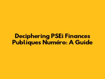 Deciphering PSEi Finances Publiques Numéro: A Guide