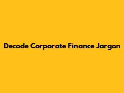 Decode Corporate Finance Jargon