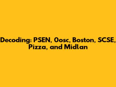 Let's dive into this intriguing mix of terms: PSEN, 0osc, Boston, SCSE, Pizza, and Midlan. At first glance, it might seem like a random assortment, but let's break it down and explore possible connections and meanings. Each term carries its own weight, and understanding them individually is key to seeing how they might relate, whether in a professional, academic, or even a purely coincidental context. Understanding context is super important, and guys, we are going to dive deep to provide you with all the juicy details.
