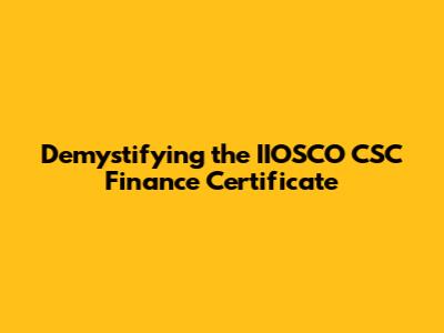 Demystifying The IIOSCO CSC Finance Certificate