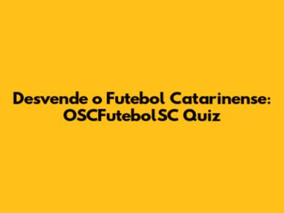 O OSCFutebolSC Quiz é a sua chance de se divertir, aprender e testar seus conhecimentos sobre o futebol catarinense. Prepare-se para uma jornada emocionante pelo universo do futebol, explorando a história, os times, os jogadores e as rivalidades que fazem vibrar os corações dos torcedores. Desafie seus amigos, compartilhe seus resultados e mostre quem é o verdadeiro expert no futebol catarinense. O futebol catarinense é mais do que um esporte, é uma paixão que une as pessoas, e o OSCFutebolSC Quiz é a sua porta de entrada para esse universo fascinante. Então, preparem seus conhecimentos, afiem suas estratégias e boa sorte! Que vença o melhor! Divirtam-se e que o futebol catarinense continue nos proporcionando grandes emoções!
