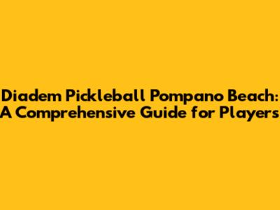 Diadem Pickleball Pompano Beach: A Comprehensive Guide for Players