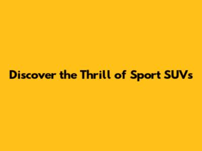 Discover The Thrill Of Sport SUVs