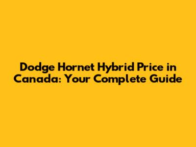 Dodge Hornet Hybrid Price In Canada: Your Complete Guide