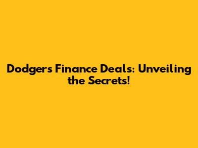 Dodgers Finance Deals: Unveiling The Secrets!