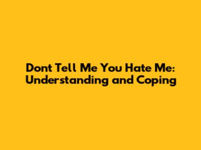Don't Tell Me You Hate Me: Understanding And Coping